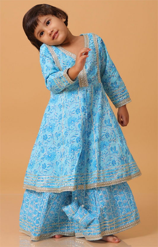 Girls- Kids Blue Sharara Kurti dupatta set ethnic wear