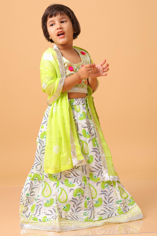Girls- Kids Lemon Green Croptop Skirt Dupatta Set