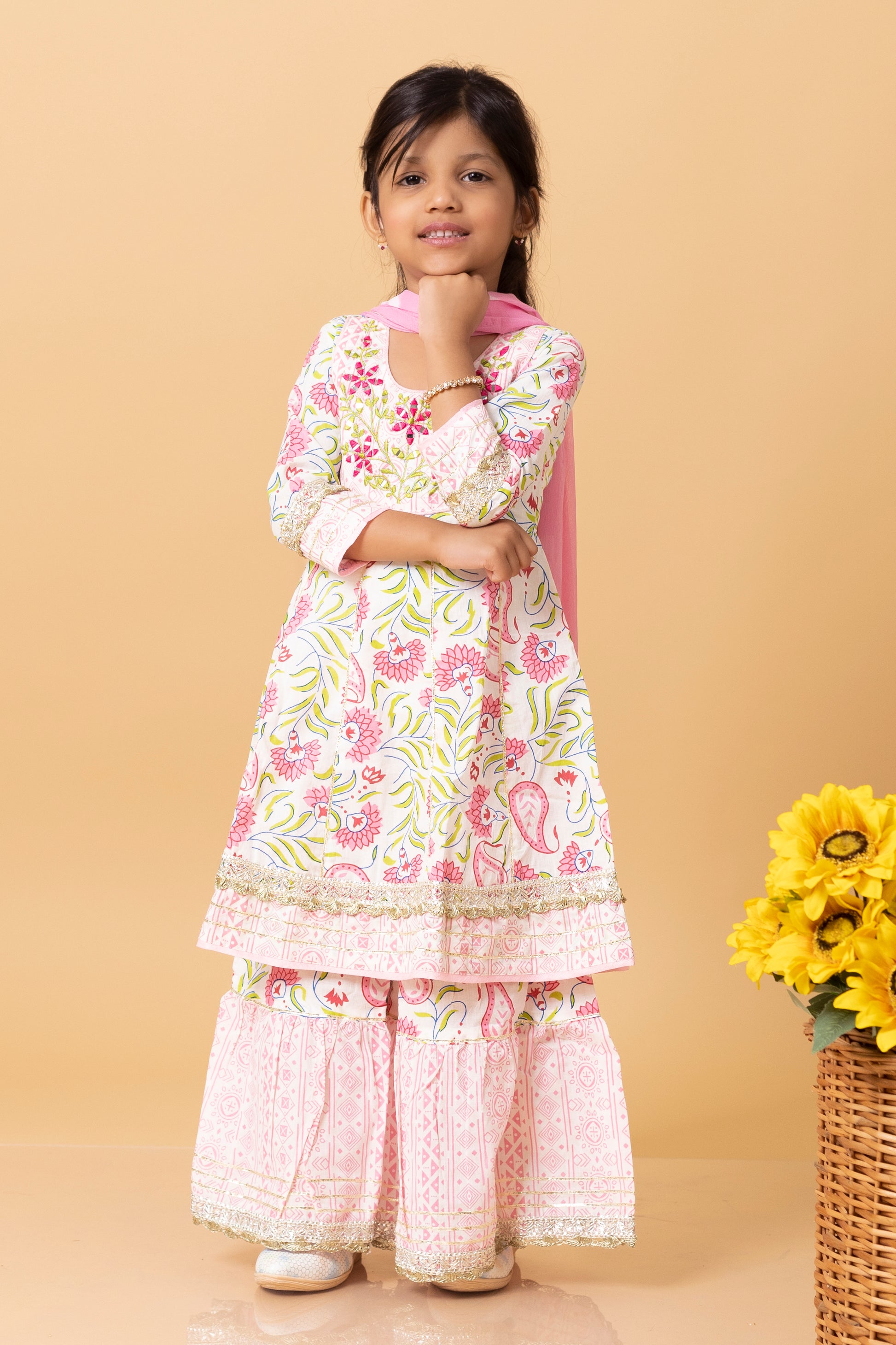 Girls- Kids Kurti Sharara and dupatta set ethnic wear for girls